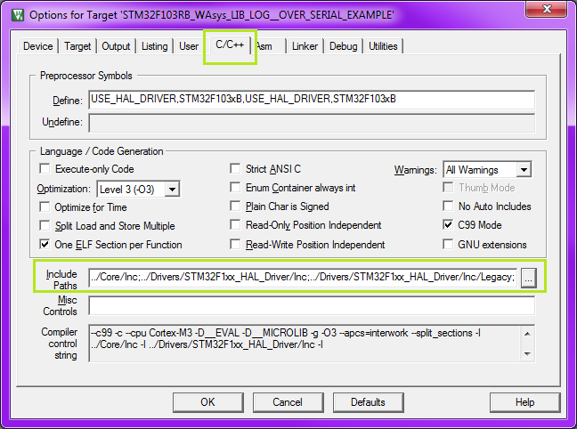 include path, in order to let/inform compiler findWAsys_logging.hheader file.Right click on project again, and this time, select Options for ... item, or simple
